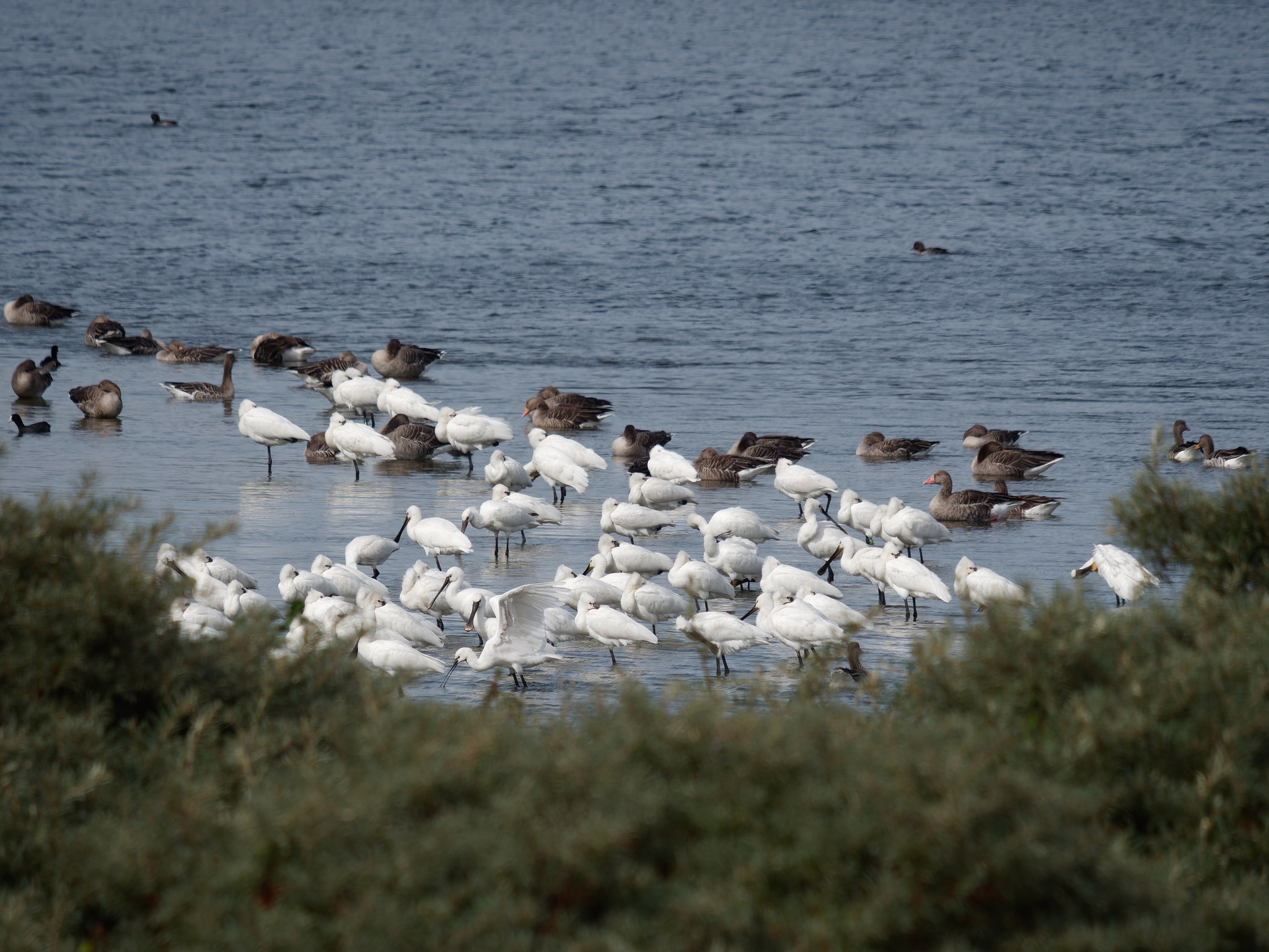 Norderney, Surferbucht. Zusammen mit zwei Stockenten und zwei dunklen Wasserläufern.