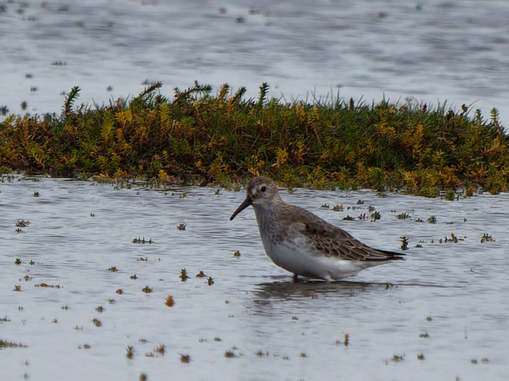 mit Alpenstrandläufern. Norderney, Inselosten, Wasserfläche zwischen Dünen, nach Sturmflut.