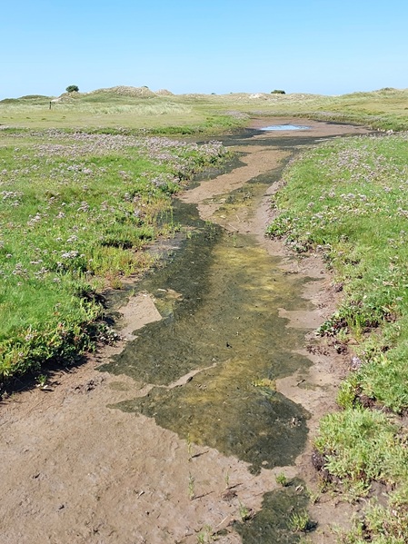 Immer wieder findet man recht große, dunkel grüne Matten auf Norderney. Sie sehen aus, als würden sie aus Grünalgen oder Moosen bestehen. Sie sind erstaunlich fest und lassen sich oft wie Teppiche über dem Sand verschieben.