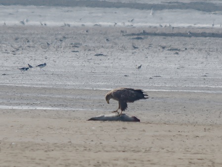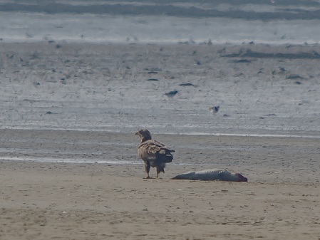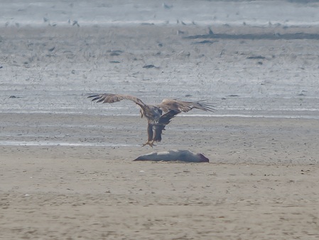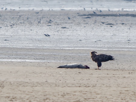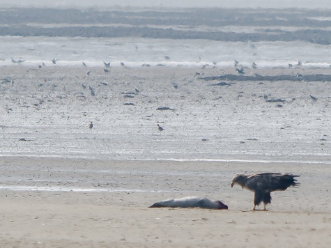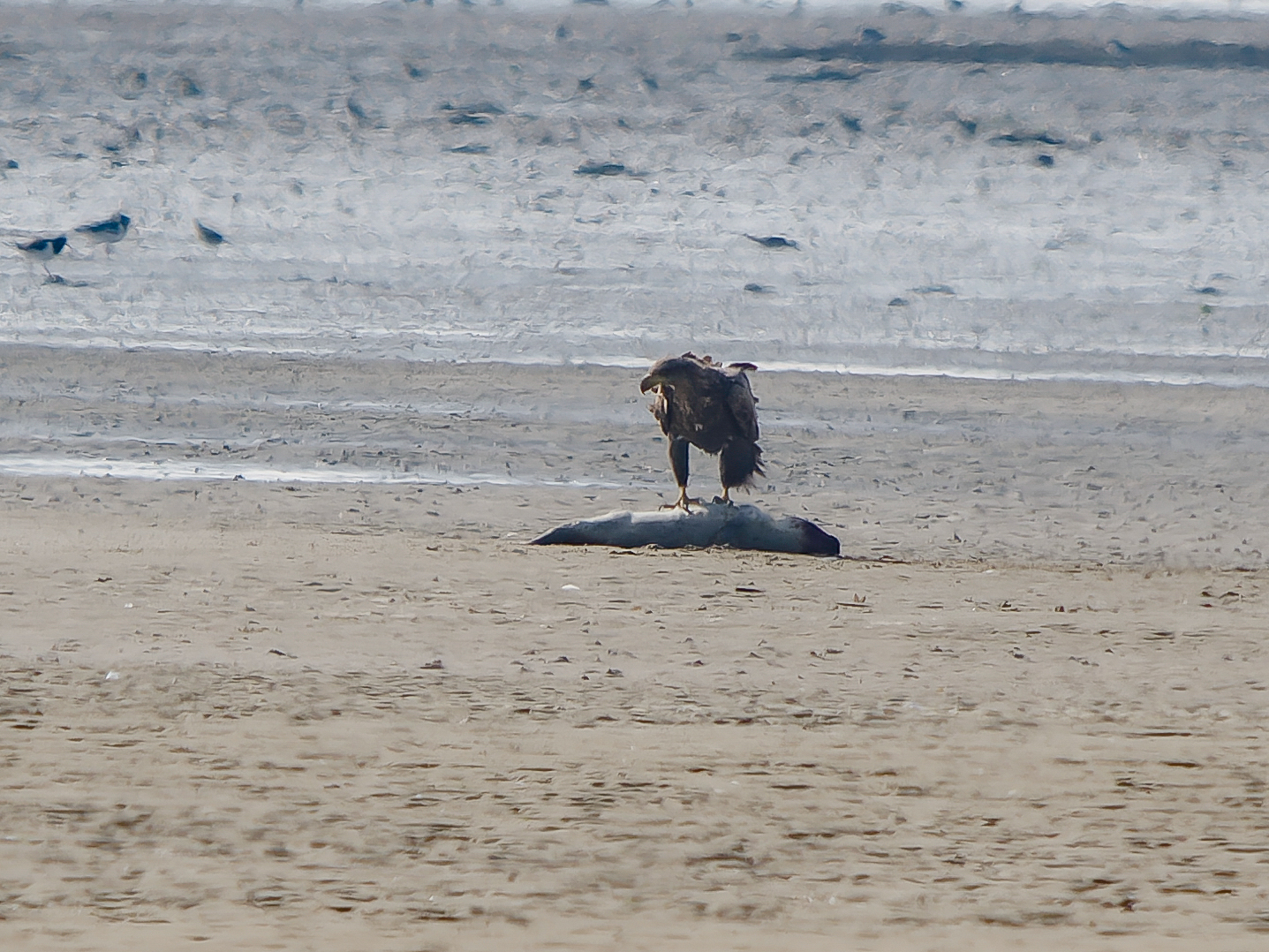 versucht sich an einem toten Seehund. Allerdings erfolglos.